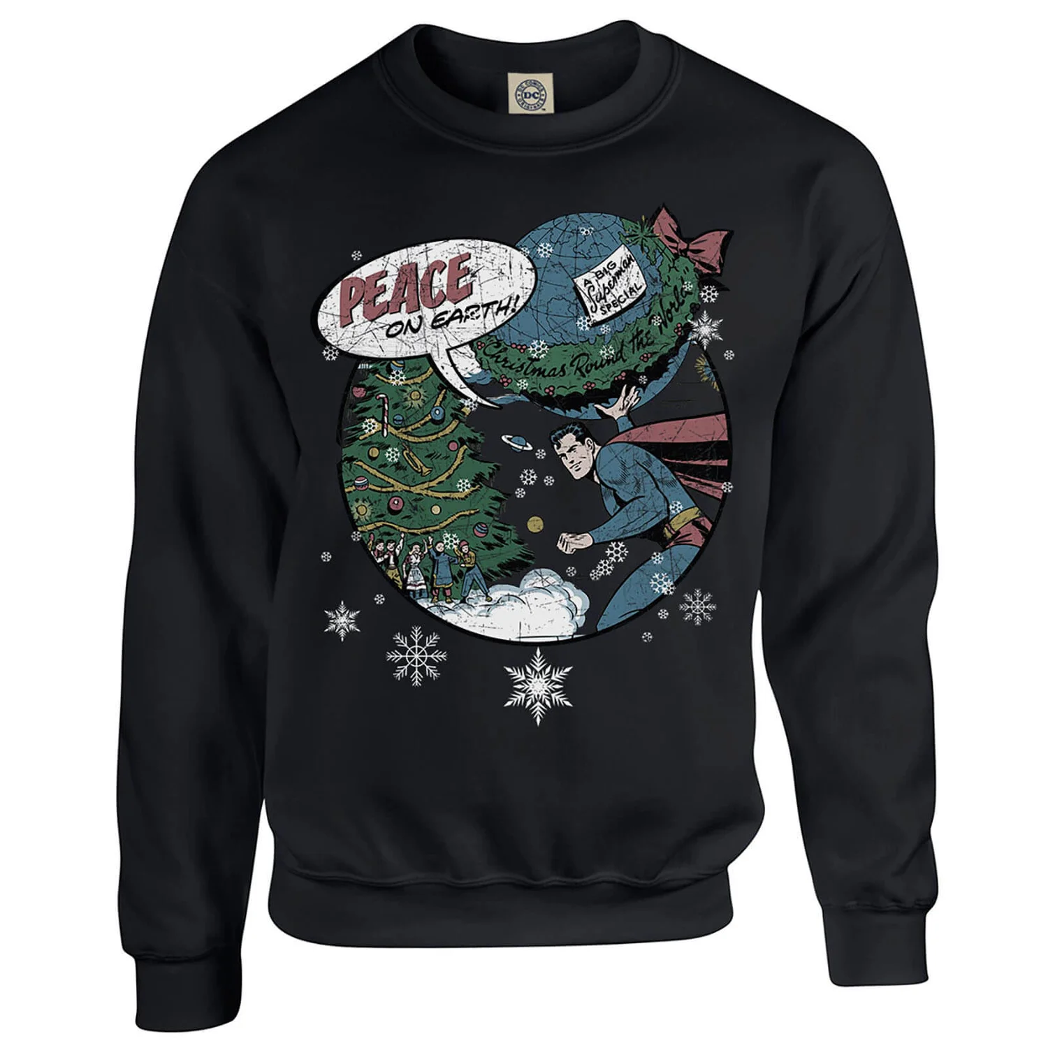 Our brilliant DC Comics Originals Superman Peace On Earth Black Christmas Sweatshirt, stylish and practical, is unique to our site.