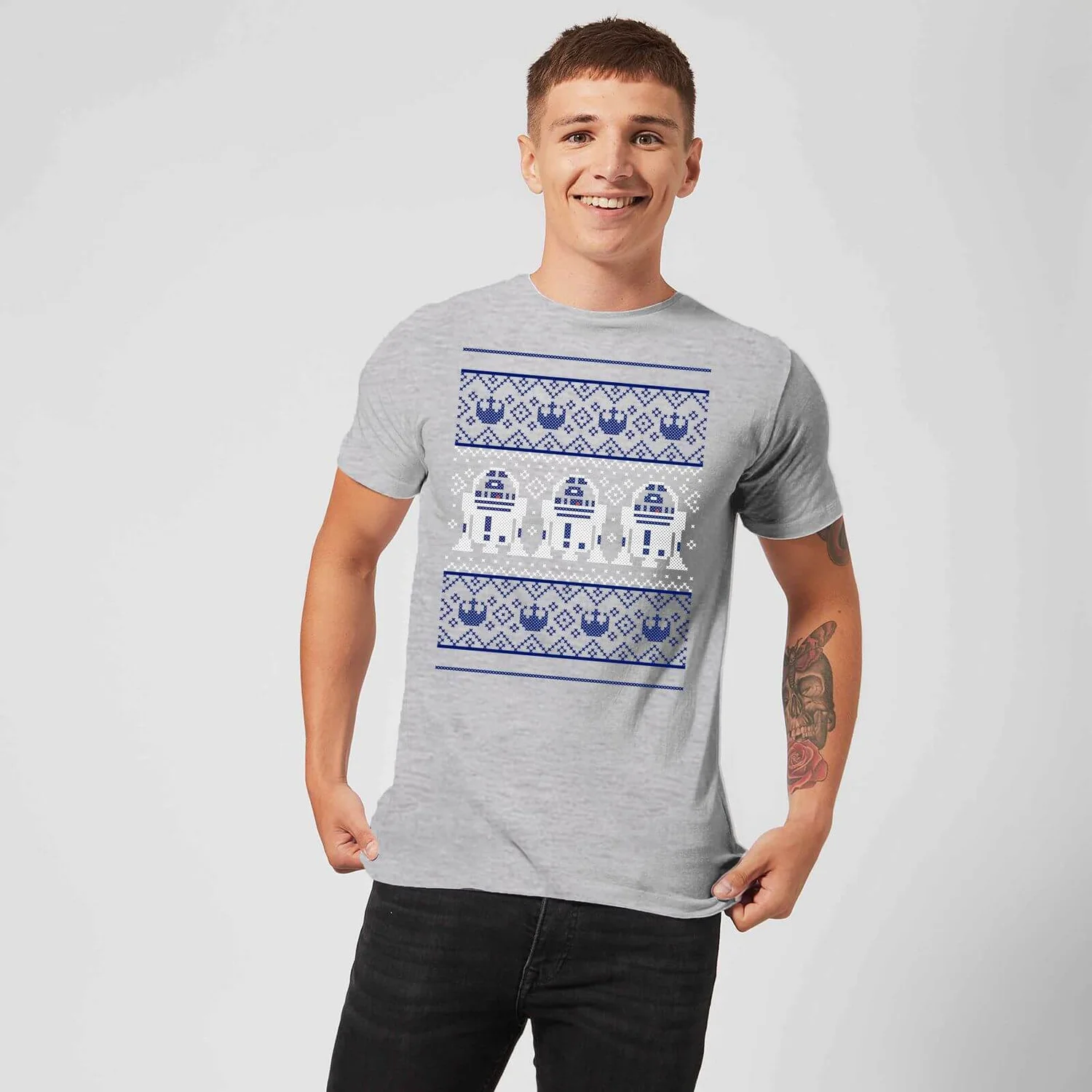 Star Wars Christmas R2D2 Knit Grey T-Shirt